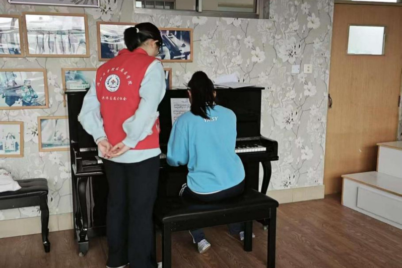 本次活动紧密围绕盲童成长需求,设计“学业辅导”与“艺术启迪”两大模块,致力于提供有温度、见实效的陪伴支持。在学业辅导方面,志愿者采取“一对一”结对方式,针对初、高中盲童在数学、物理等学科上面临的困难,注重运用具体化、逻辑清晰的语言进行讲解,结合生活实例阐释抽象概念,借助触觉教具辅助理解,通过耐心细致的引导,帮助孩子们逐步克服学习障碍,建立学习自信。在艺术启迪方面,志愿者依托盲校现有乐器资源,发挥自身特长,引导孩子们认识乐器结构、聆听音色特点、学习基本演奏方法,并共同练习简单曲目,让音乐成为超越视觉的沟通桥梁,帮助孩子们在旋律中提升了感知力、协调性与自信心。
