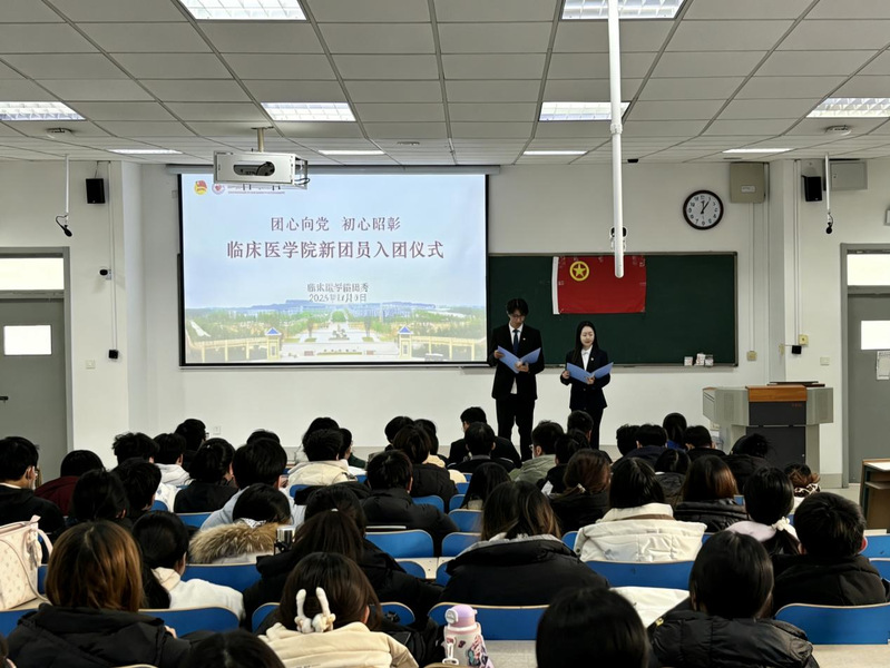 为加强学院共青团组织建设,引导广大青年坚定理想信念、弘扬爱国精神12月4日,临床医学院于浮烟山校区A203教室举行2025年下半年新发展团员入团仪式。学院党委副书记刘刚团委书记各年级团总支书记优秀团员代表和全体新发展团员参加