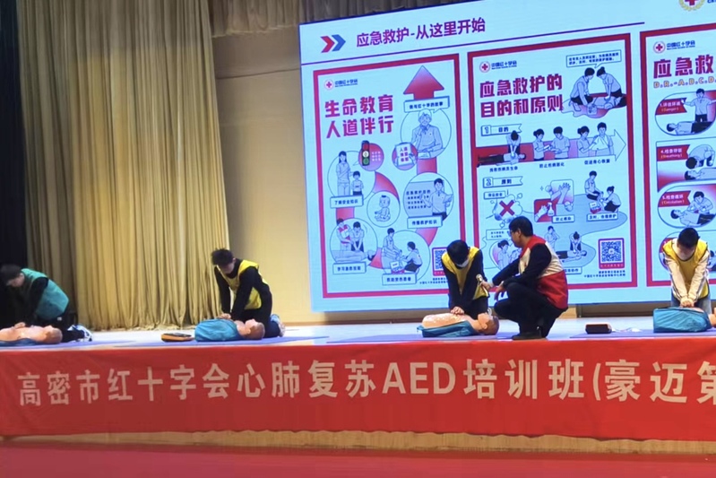 近日,临床医学院联合附属高密市人民医院走进豪迈科技,开展第二期急救技能培训暨项目化临床见习实践课程。活动由高密市人民医院科教科主任刘疆东和急诊医学部副主任王一带队,临床医学院2022级学生党员以及入党积极分子代表、豪迈科技职工320余人参加活动。